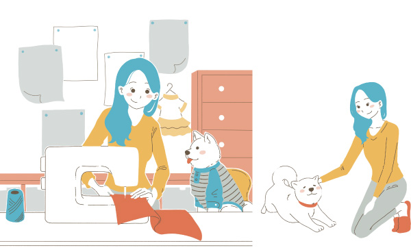 介護が必要な母と自分の生活を両立しながら快適に暮らすため、思い切って同居の際にフルリノベーションをしました。近隣の方とは介護の悩みを共有するうちに互いに相談し合える仲になり、そこから徐々に地域との繋がりが生まれました。母が亡くなった現在は自宅(実家)1階をペットの洋服のお店に改装。自身の服飾のキャリアを生かして、フリーランスでペットの洋服作りをしながら暮らしています。自分のライフスタイルに合わせたリノベーションをしたことによって、さらに地域の方と交流の場が持てたように思います。
