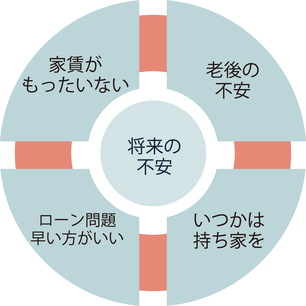 誰もが将来に対する不安を抱えています。「賃貸」と「持ち家にした際の返済額」を比較したり、「子育て費用」や「老後資金」に不安を感じたり。ライフステージが変化するタイミングで湧いてくるものは、主として「お金」の不安です。